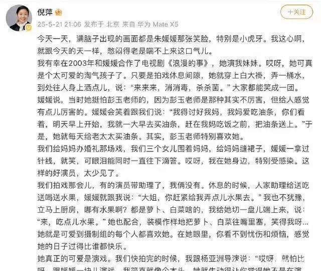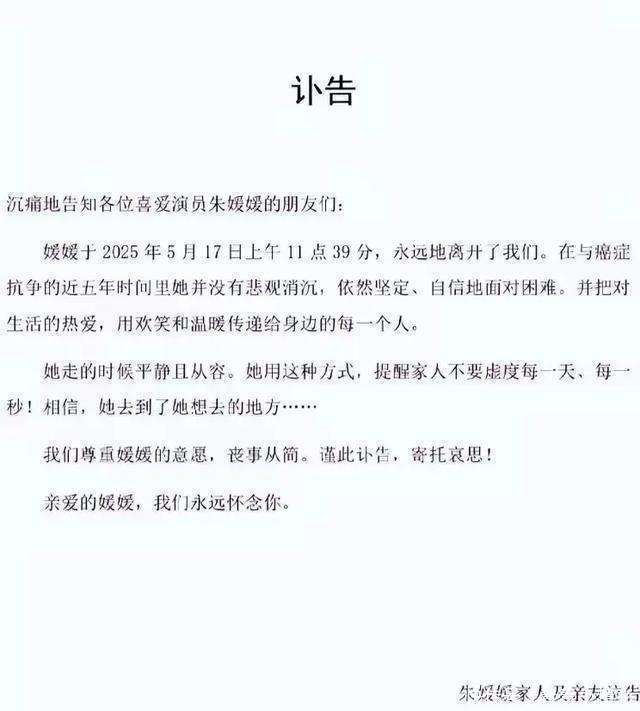 5月21号,辛柏青憨厚千里痛宣告,朱媛媛憨厚在5月17号离开了咱们。音信一出,悉数这个词文娱圈都遮蔽在一派愁然之中。倪萍憨厚洋洋纚纚写下千字长文,回忆两东说念主过往,字里行间都是真情实感。田沁鑫院长躬行修改讣告,撰写哀辞,可见对朱媛媛憨厚的疼爱。陶虹、刘敏涛、赵丽颖、黄磊等等,一众明星纷繁发文吊唁,就连易烊千玺、刘浩存、张子枫、赵今麦这些被她视为子女的后辈,也都用我方的阵势抒发哀念念。